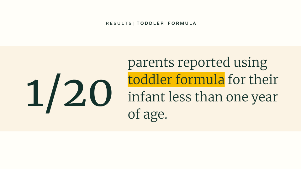 One out of 20 respondents was using a toddler formula for their infant less than one year of age.